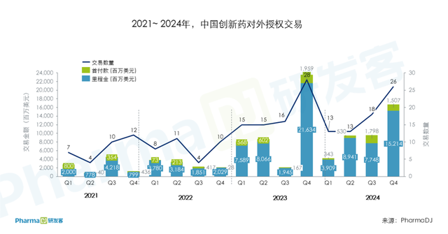 41.8亿美元的首付款也超过同期公布的融资总额32.9亿美元,对外授权正成为中国创新药企最重要的替代融资方式。